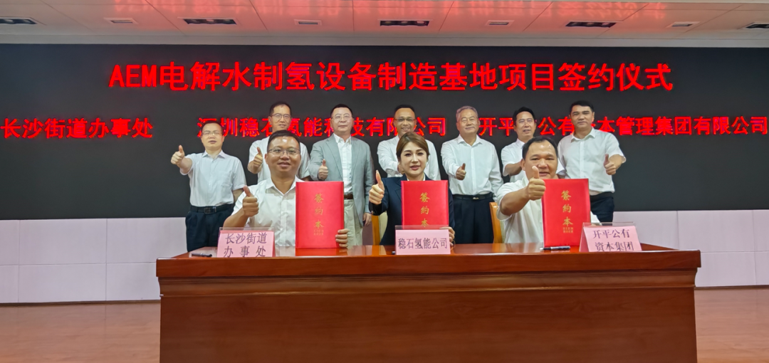 签约仪式上,长沙街道办事处、开平市公有资本管理集团有限公司分别与深圳稳石氢能科技有限公司、扬华科创(深圳)新能源装备有限公司签署框架协议。