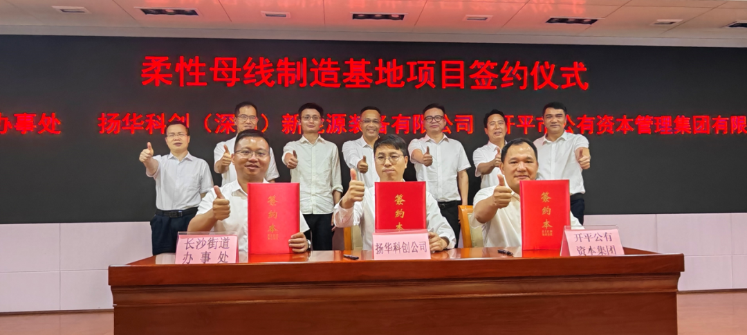 本次签约的深圳稳石氢能科技有限公司AEM电解水制氢设备制造基地项目,总投资约2.5亿元,用于生产AEM电解槽及核心部件、氢能无人机等产品。扬华科创柔性母线制造基地项目总投资约1.2亿元,主要生产柔性母线等产品。