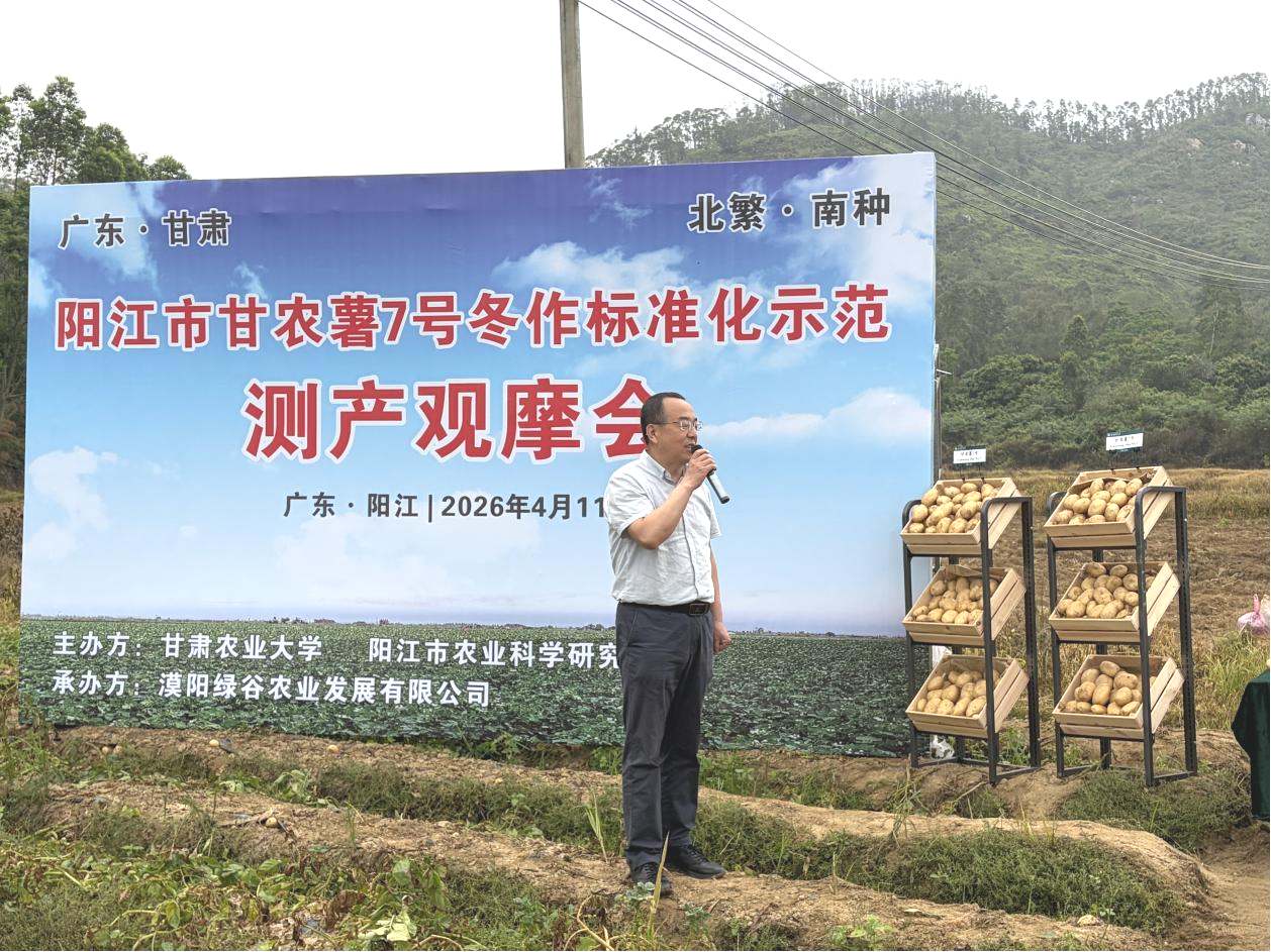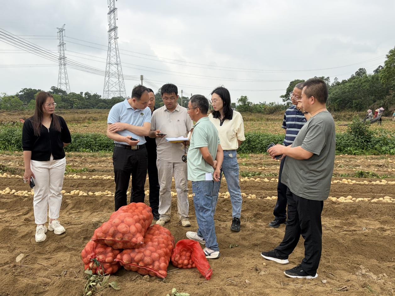 活动现场来自广东、甘肃省两地的行业专家和企业,实地观摩“甘农薯7号”田间长势和测产表现,围绕南方冬作区加工型马铃薯品种推广及产业发展进行交流,推动优质马铃薯品种“北繁南种”模式在冬作区落地,同时也展示了甘农薯7号在阳江市的标准化种植成果,为冬作区马铃薯产业提供优质加工型品种。